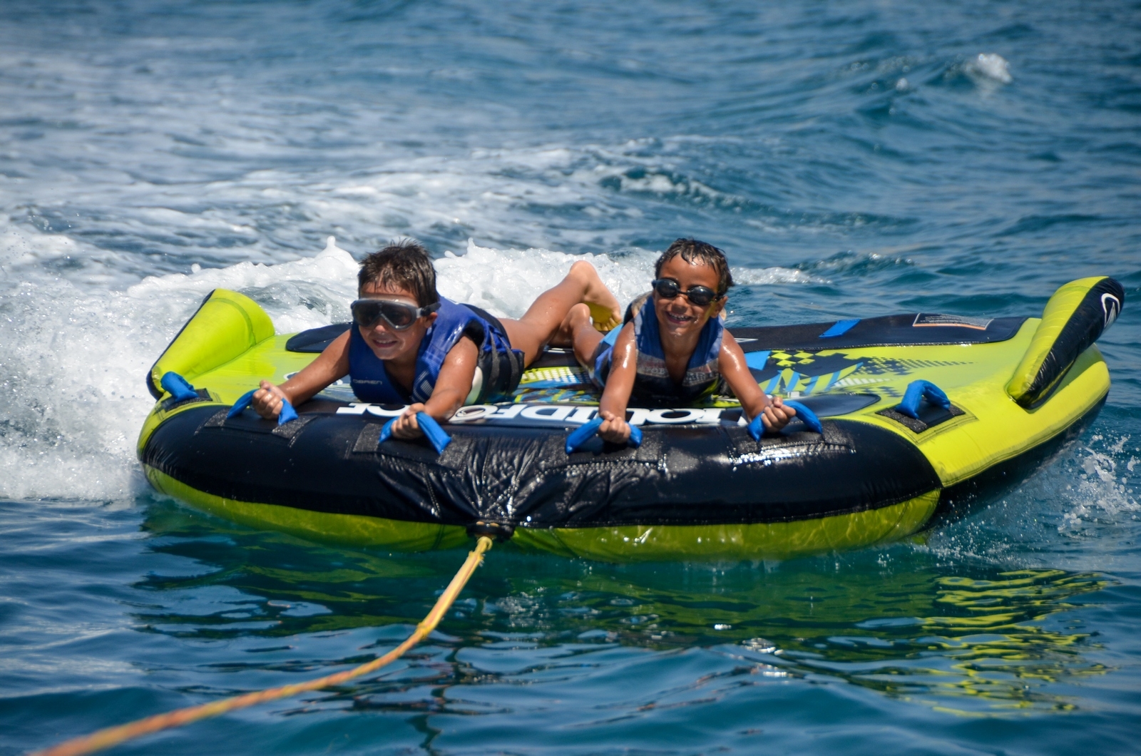 If you are looking for an exciting ride and a lot of laughs, inflatables are the choice for you! We have singles, doubles, triples, Bananas, towable Sofas and even ones that fly! Inflatables are easy to ride and suitable for ALL AGES, just be prepared for a lot of bouncing and laughter!
